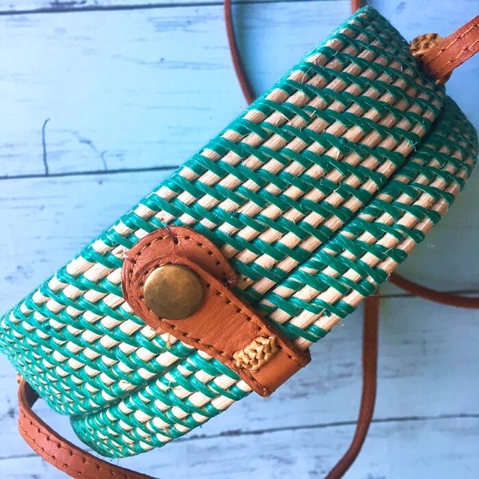 【バリ直輸入】ラウンド ショルダーバッグ(エメラルドグリーン)/丸型カゴバッグ/ストローbag/リゾートバッグ