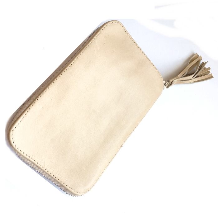 ボヘミアン 本革 レザー タッセル付 ウォレット(アイボリー×スマホケース) 財布 長財布 ショルダー付パスポート入れ【バリ直輸入】