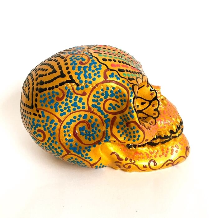 メキシカンスカル オブジェ 骸骨 カラベラ (ゴールド)【バリ直輸入】