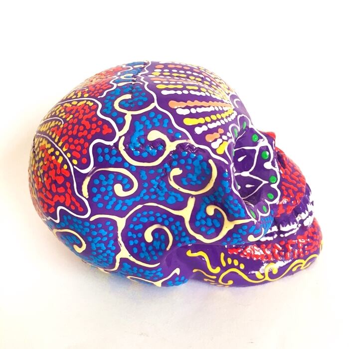 メキシカンスカル オブジェ 骸骨 カラベラ (パープルA)【バリ直輸入】