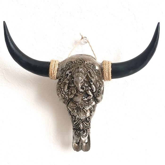 ネイティブアメリカン カウスカル オブジェ牛 ガネーシャ 骸骨(シルバー)【バリ直輸入】
