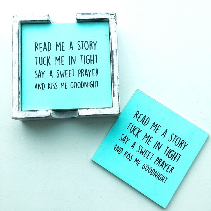 海を感じる メッセージ 木製コースター 6P 収納BOX付(ミント)【バリ島直輸入】