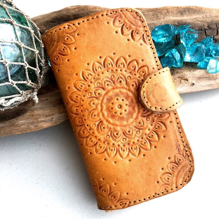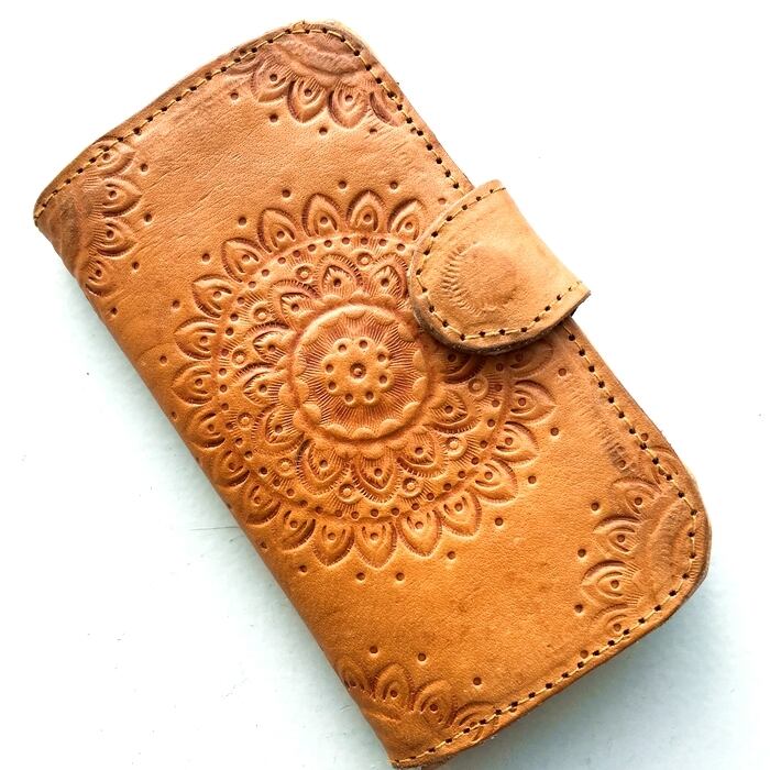 ボヘミアン ハンドメイド レザー アイフォン ケース(マンダラ柄) 本革 Iphone6/ Iphone6s【バリ島直輸入】