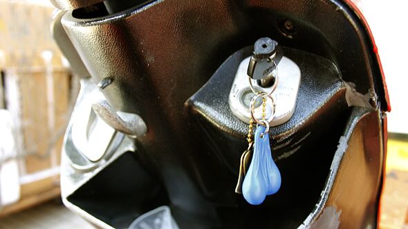 アメリカではピックアップトラックの牽引連結部分にぶら下げるのが流行ってるそうで、「雄牛の●玉」は勇敢さの象徴のようです。