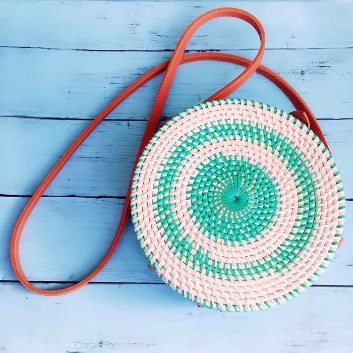 今バリ島で大流行中の丸型ストローショルダーバッグです。