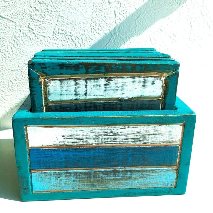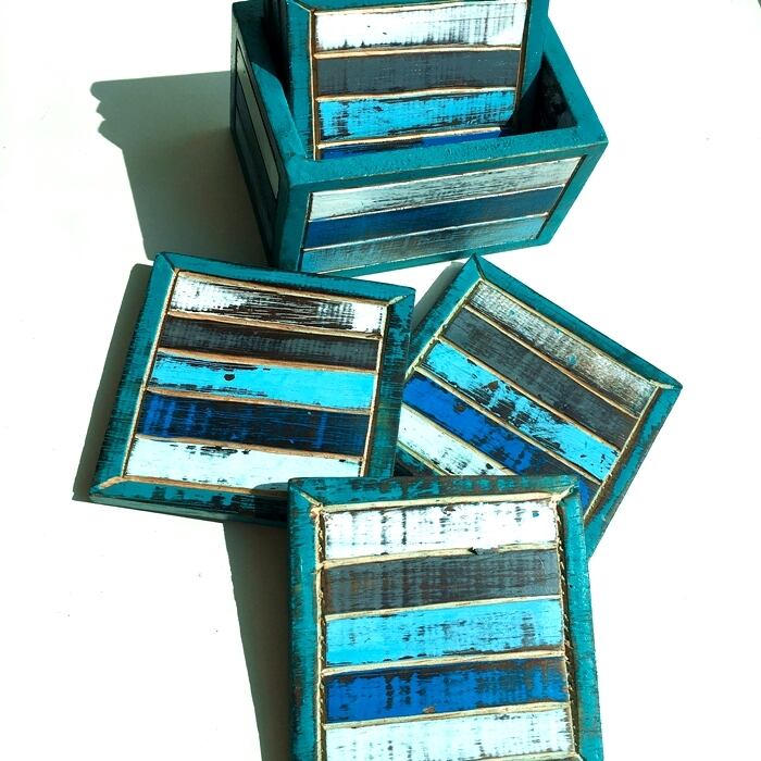 海を感じる 木製コースター 6P 収納BOX付(グリーンmix)【バリ島直輸入】