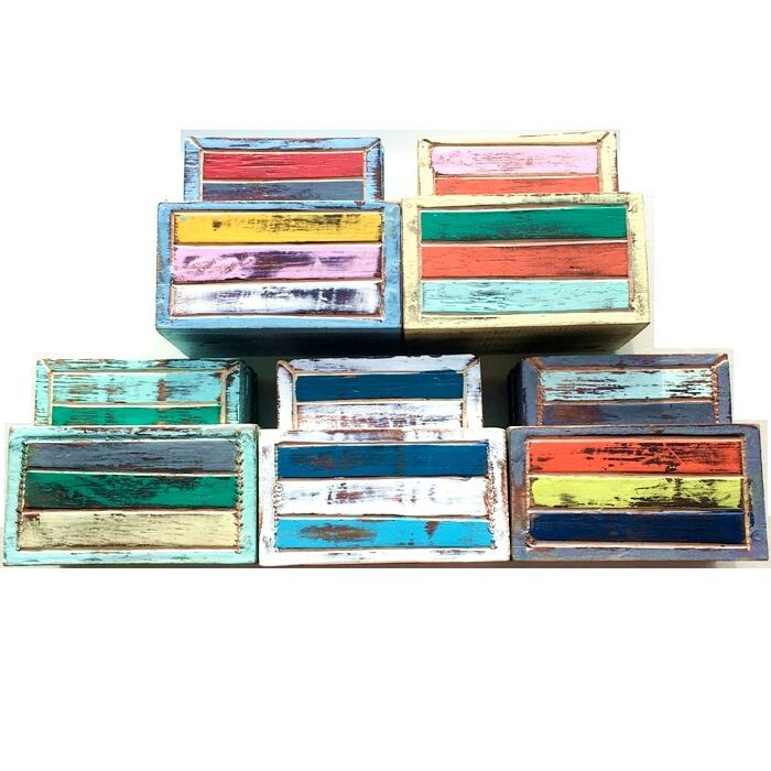 海を感じる 木製コースター 6P 収納BOX付(イエローmix)【バリ島直輸入】