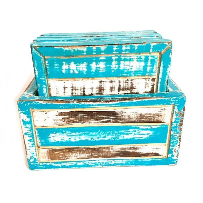 海を感じる 木製コースター 6P 収納BOX付(ブルーmix)【バリ島直輸入】