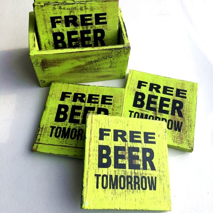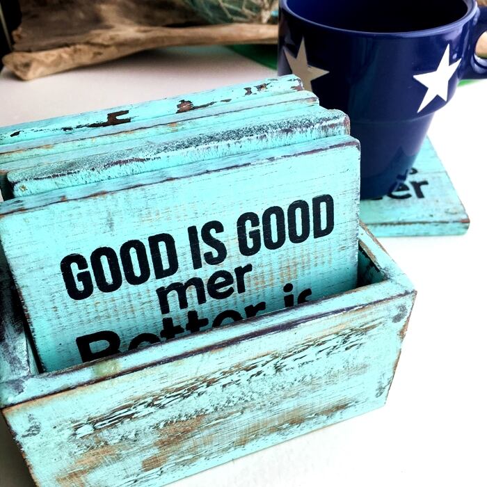 海を感じる メッセージ 木製コースター 6P 収納BOX付(グリーン)【バリ島直輸入】