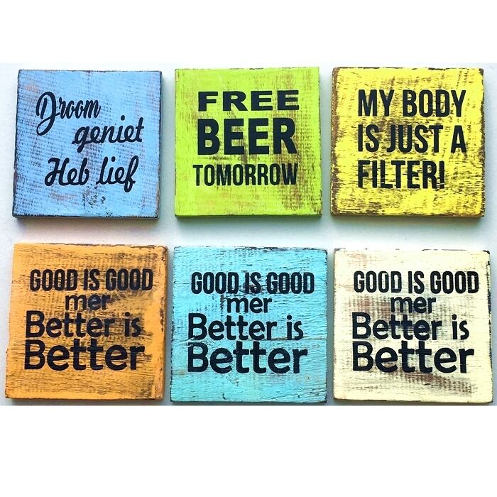 海を感じる メッセージ 木製コースター 6P 収納BOX付(イエロー)【バリ島直輸入】