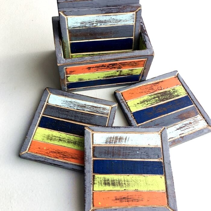 海を感じる 木製コースター 6P 収納BOX付(グレーmix)【バリ島直輸入】