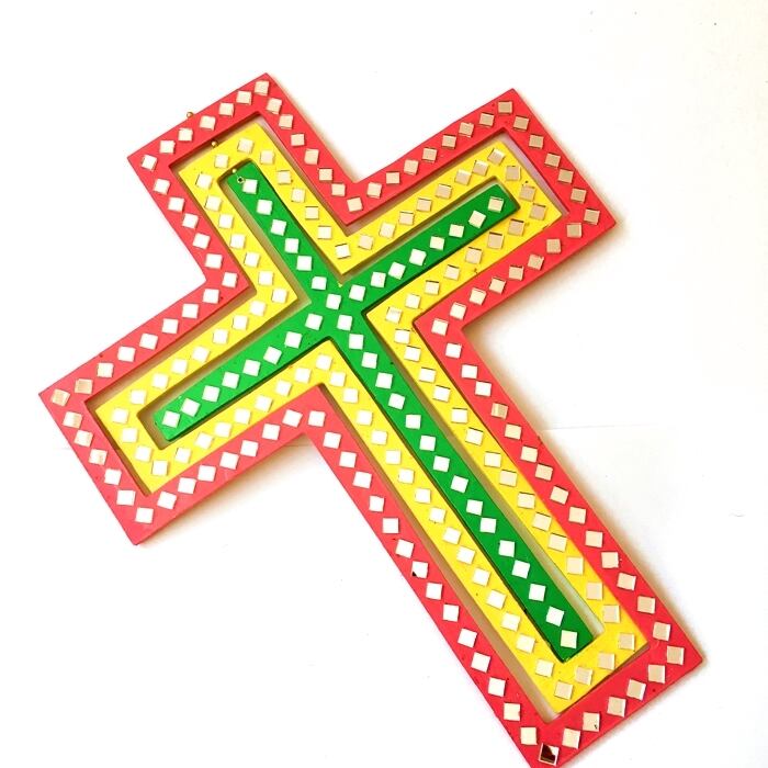 モザイクミラーの3色クロスオーナメント/十字架 モビール インテリア【バリ島直輸入】