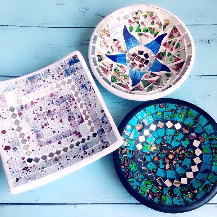 バリ発、テラコッタ(素焼き)のトレーにガラスやミラーを敷き詰め、