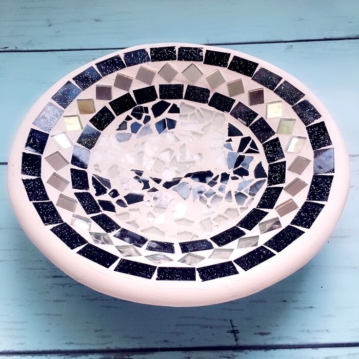 カラフル モザイクトレイ (黒×白)小物入れ インテリア ラウンドプレート【バリ島直輸入】