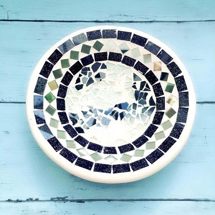バリ発、テラコッタ(素焼き)のトレーにガラスやミラーを敷き詰め、