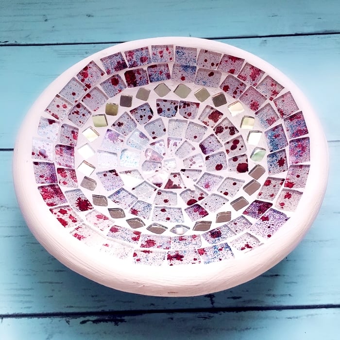 カラフル モザイクトレイ (パープル×ホワイト)小物入れ インテリア ラウンドプレート【バリ島直輸入】