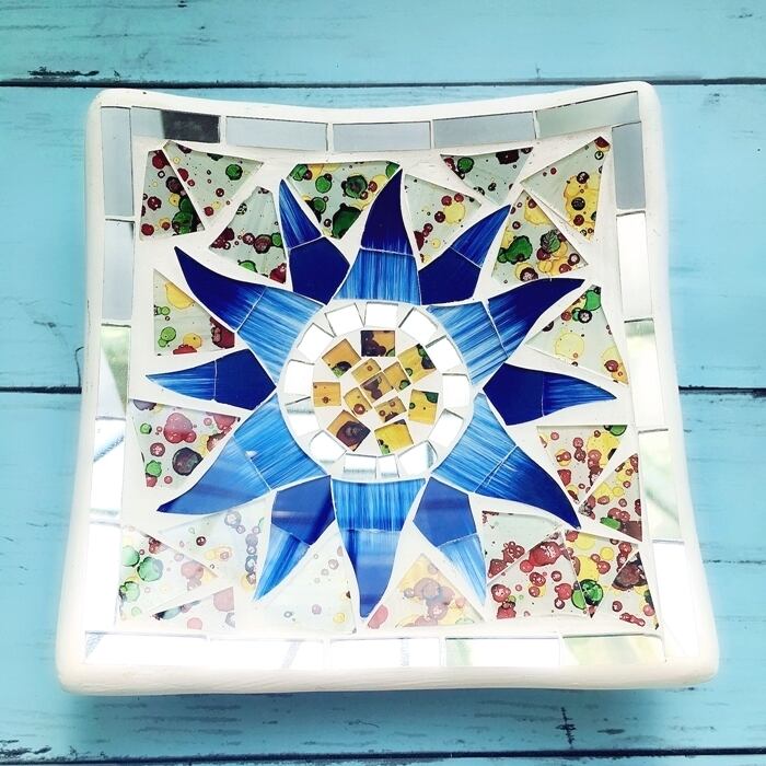 カラフル モザイクトレイ (フラワー)小物入れ インテリア スクエアプレート【バリ島直輸入】