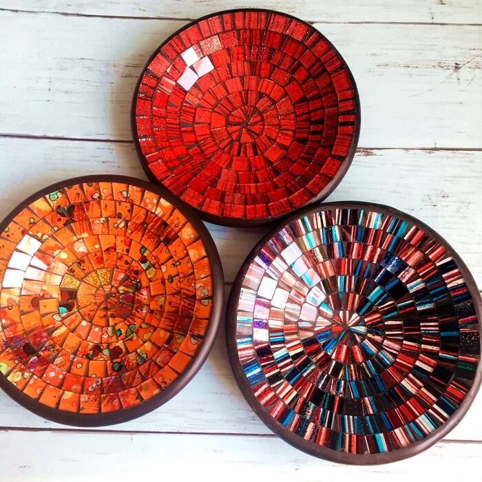 バリ発、テラコッタ(素焼き)のトレーにガラスやミラーを敷き詰め、