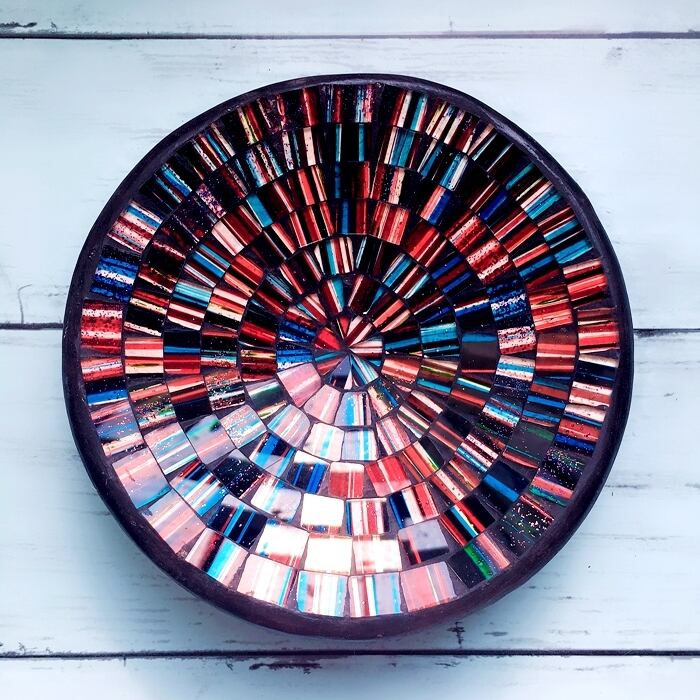 カラフル モザイクトレイ (マルチカラー×ブラック)小物入れ インテリア ラウンドプレート【バリ島直輸入】