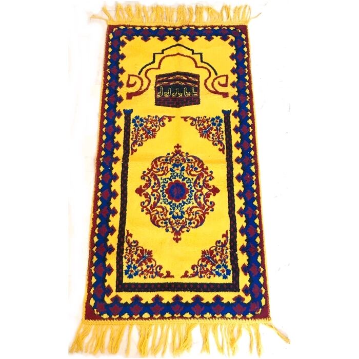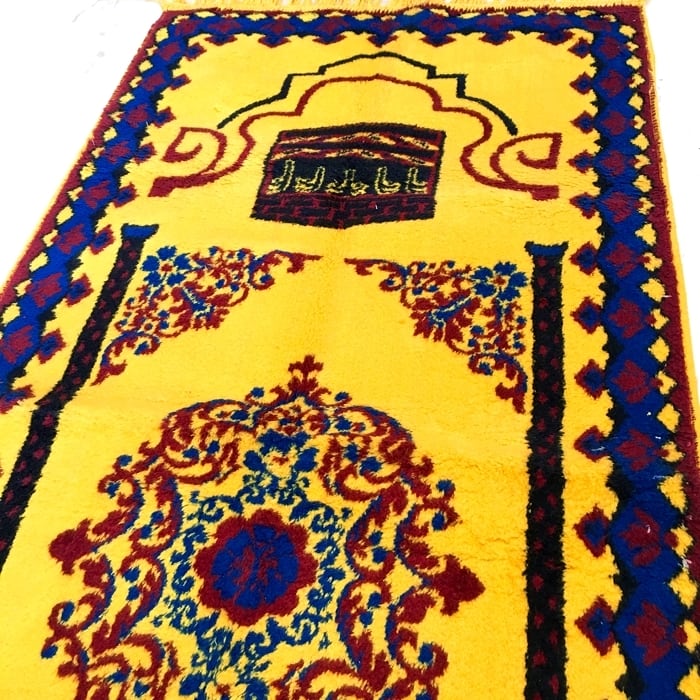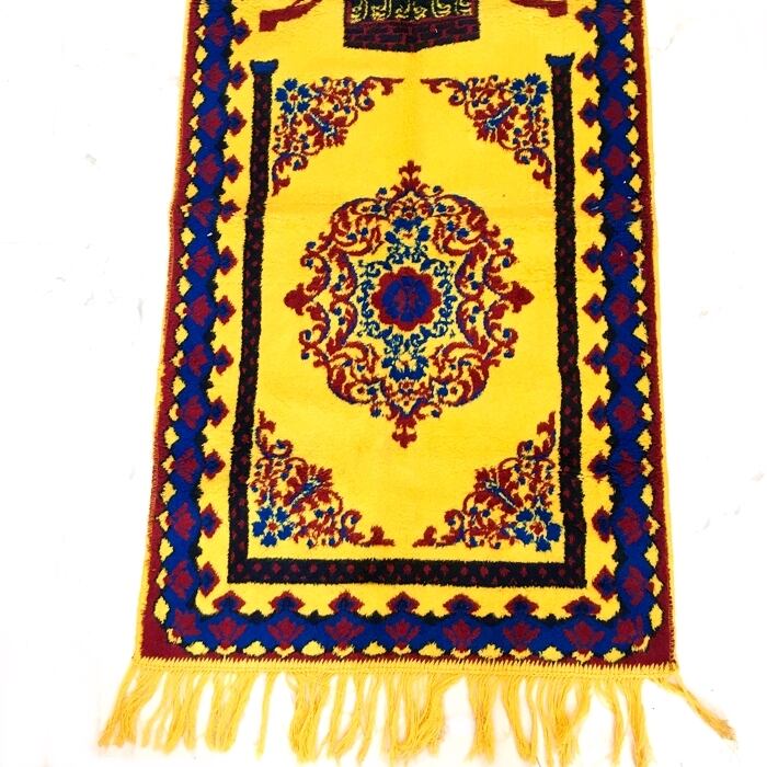 ムスリム モスク柄 ラグ (イエロー) 礼拝用マット イスラム お祈り 絨毯 【バリ島直輸入】