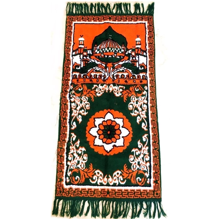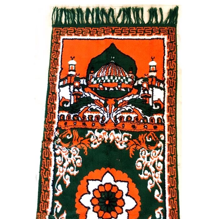ムスリム モスク柄 ラグ (緑×オレンジ) 礼拝用マット イスラム お祈り 絨毯 【バリ島直輸入】