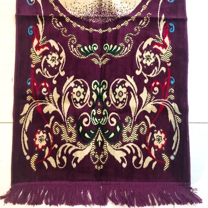 ムスリム モスク柄 ラグ (パープル) 礼拝用マット イスラム お祈り 絨毯 【バリ島直輸入】