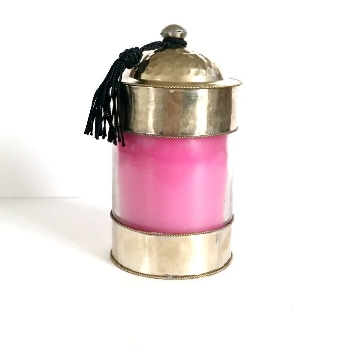 タッセル&シルバー 蓋つき アロマキャンドル(ピンクM)石鹸の香り【モロッコ直輸入】