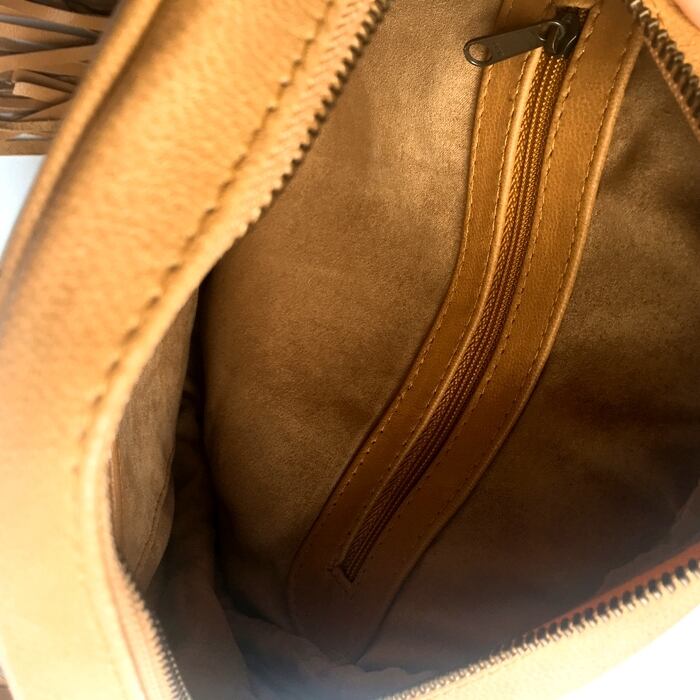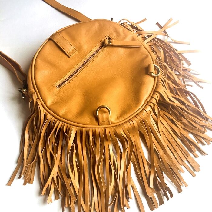 2Way ラウンドバッグ 本革 ボヘミアン フリンジ (キャメル)リュック ショルダー【バリ直輸入】