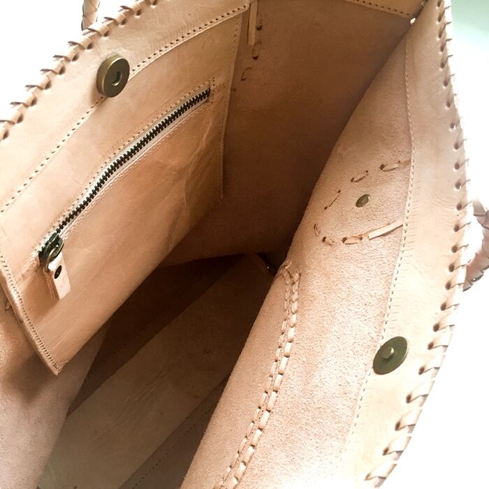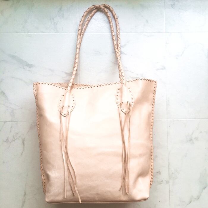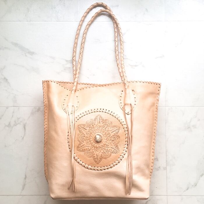 本革 ボヘミアン トートバッグ(アイボリー)ショルダーバッグ【バリ直輸入】