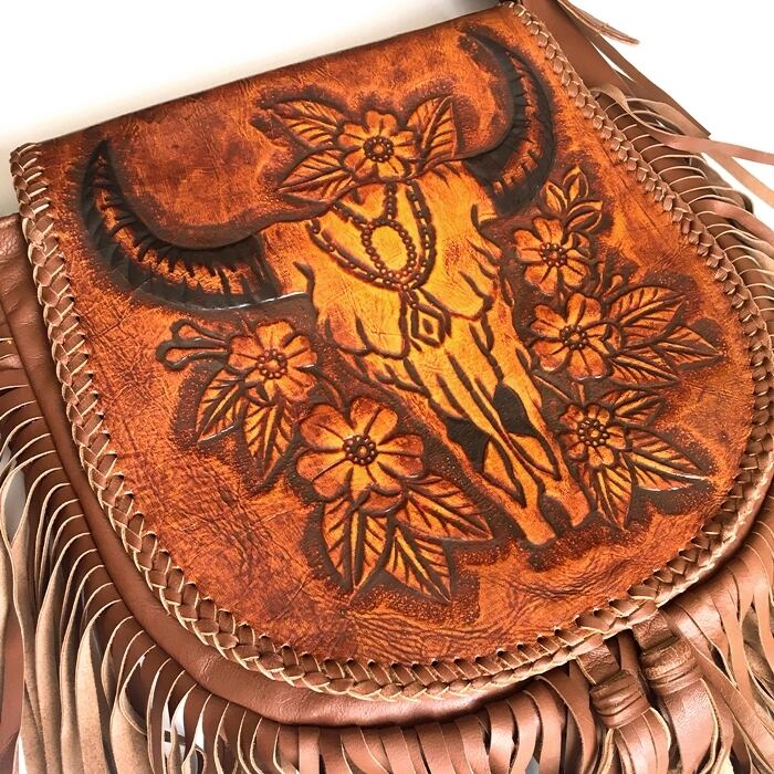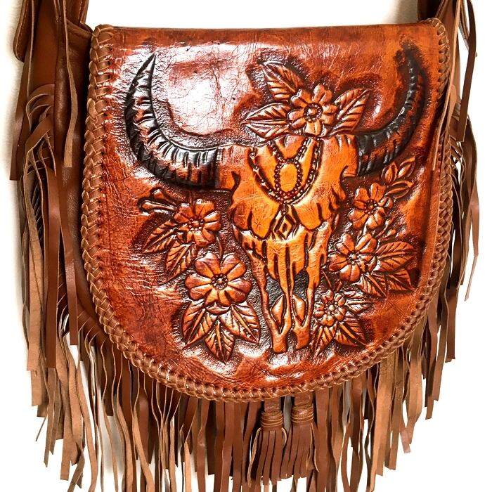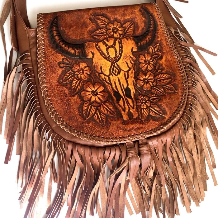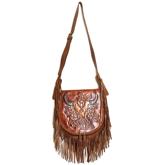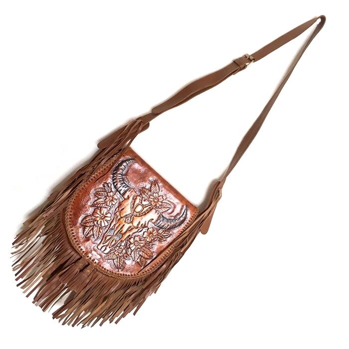 本革 ボヘミアン フリンジショルダーバッグ(バッファロースカル)ハンドメイド レザー【バリ直輸入】