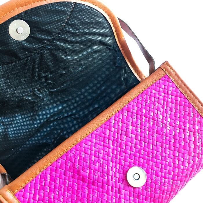 スクエア ショルダーバッグ(ピンク)/カゴバッグ/ストローbag/リゾートバッグ【バリ直輸入】