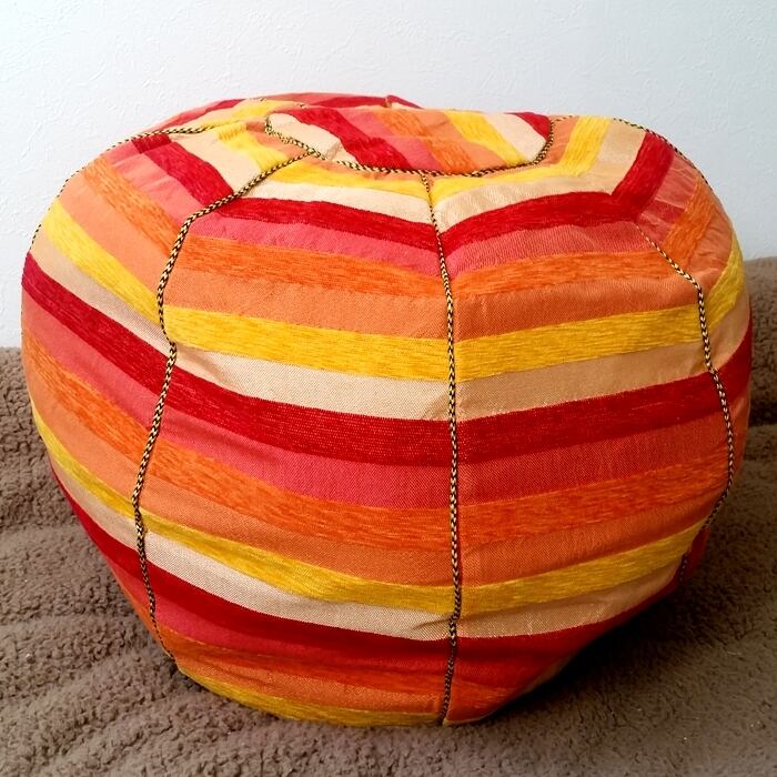 モロッコ プフ サブラシルク スツール(オレンジグラデーション)オットマン POUF【モロッコ直輸入】