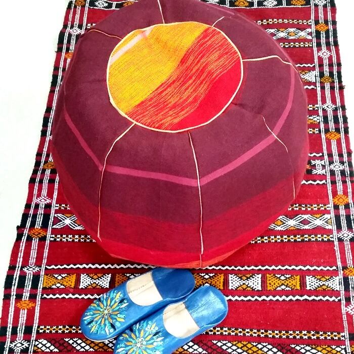 モロッコで「POUF-プフ」と呼ばれる、円柱型のスツール(オットマン)です。