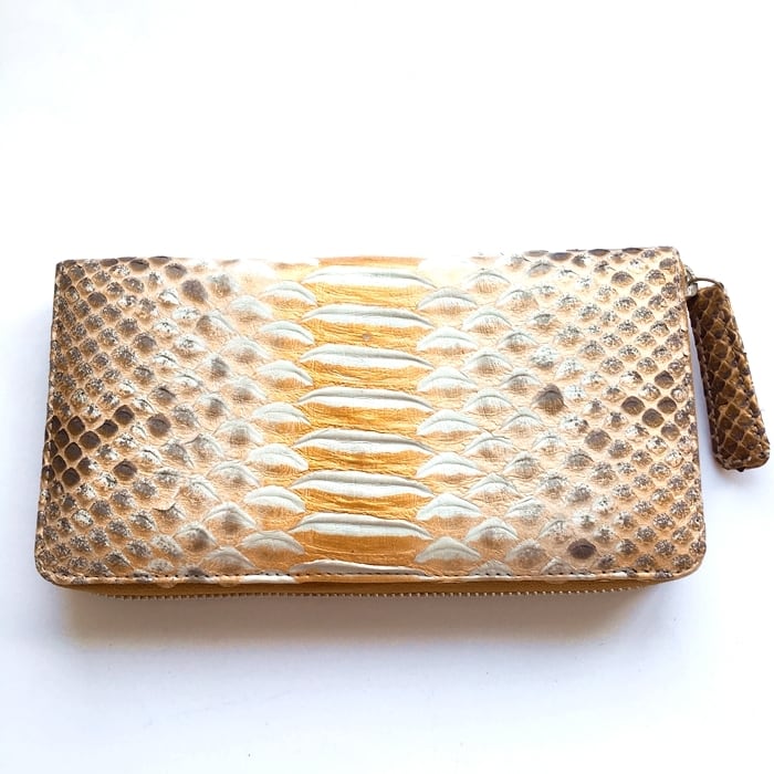 バリ直輸入の職人がひとつひとつ丁寧に手染めで仕上げた蛇革レザーウォレット!
