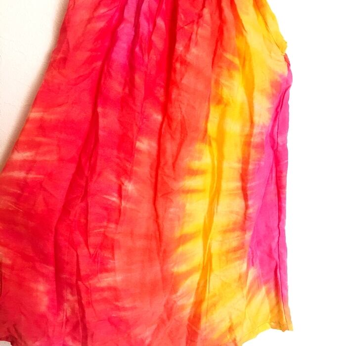 タイダイ柄 リゾートワンピース(オレンジ×イエロー)100~110cm【バリ島直輸入】