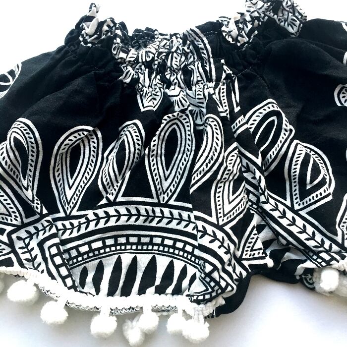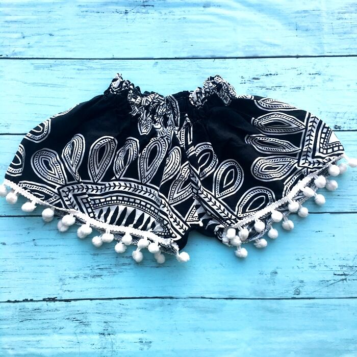 ポンポンフリンジ ショートパンツ★黒ペイズリー柄★子供 1~2歳【バリ島直輸入】
