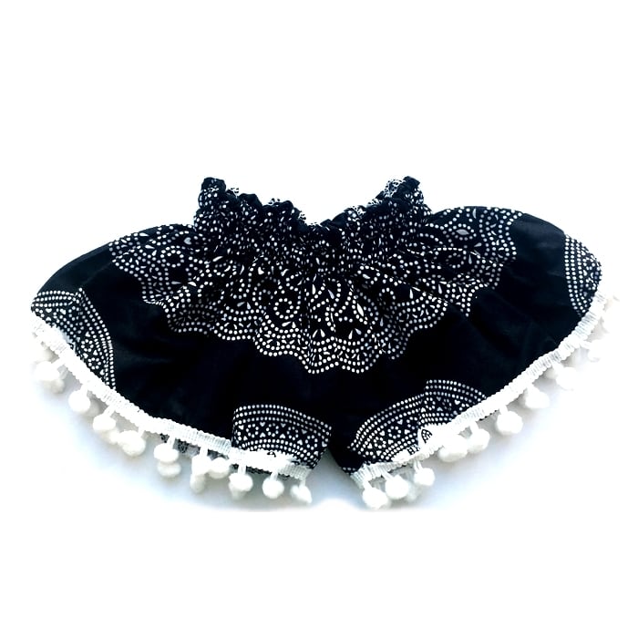 ポンポンフリンジ ショートパンツ★黒★ベビー 6か月~1歳半【バリ島直輸入】
