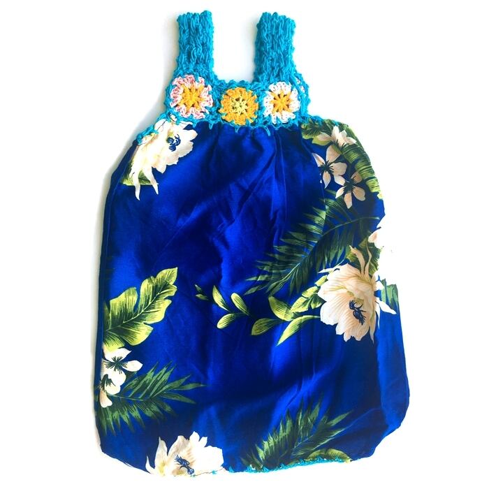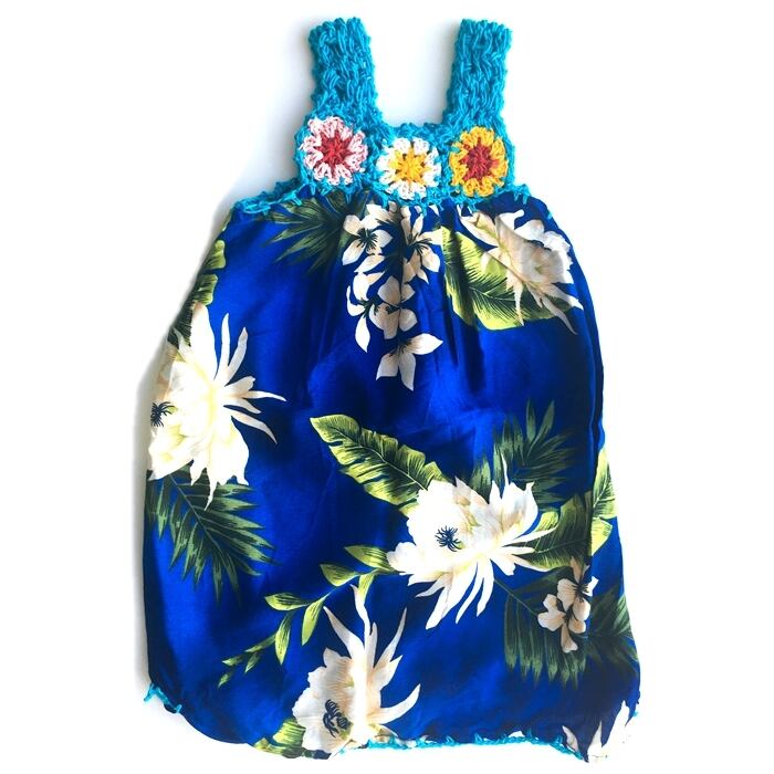 胸元クロッシェ 花柄ワンピース (ブルー) ★70~80【バリ直輸入】