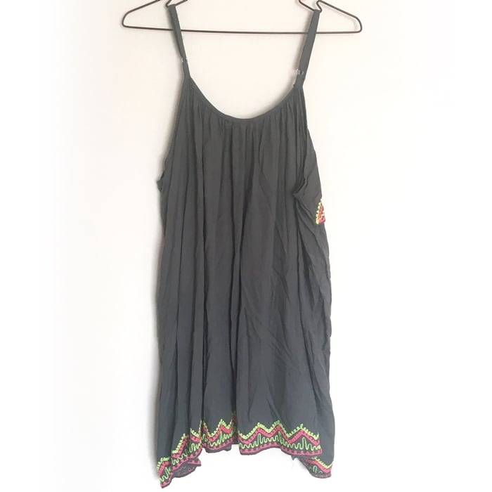 刺繍×ネオンタッセル リゾートワンピース (濃グレー)海 ビーチ 【バリ島直輸入】