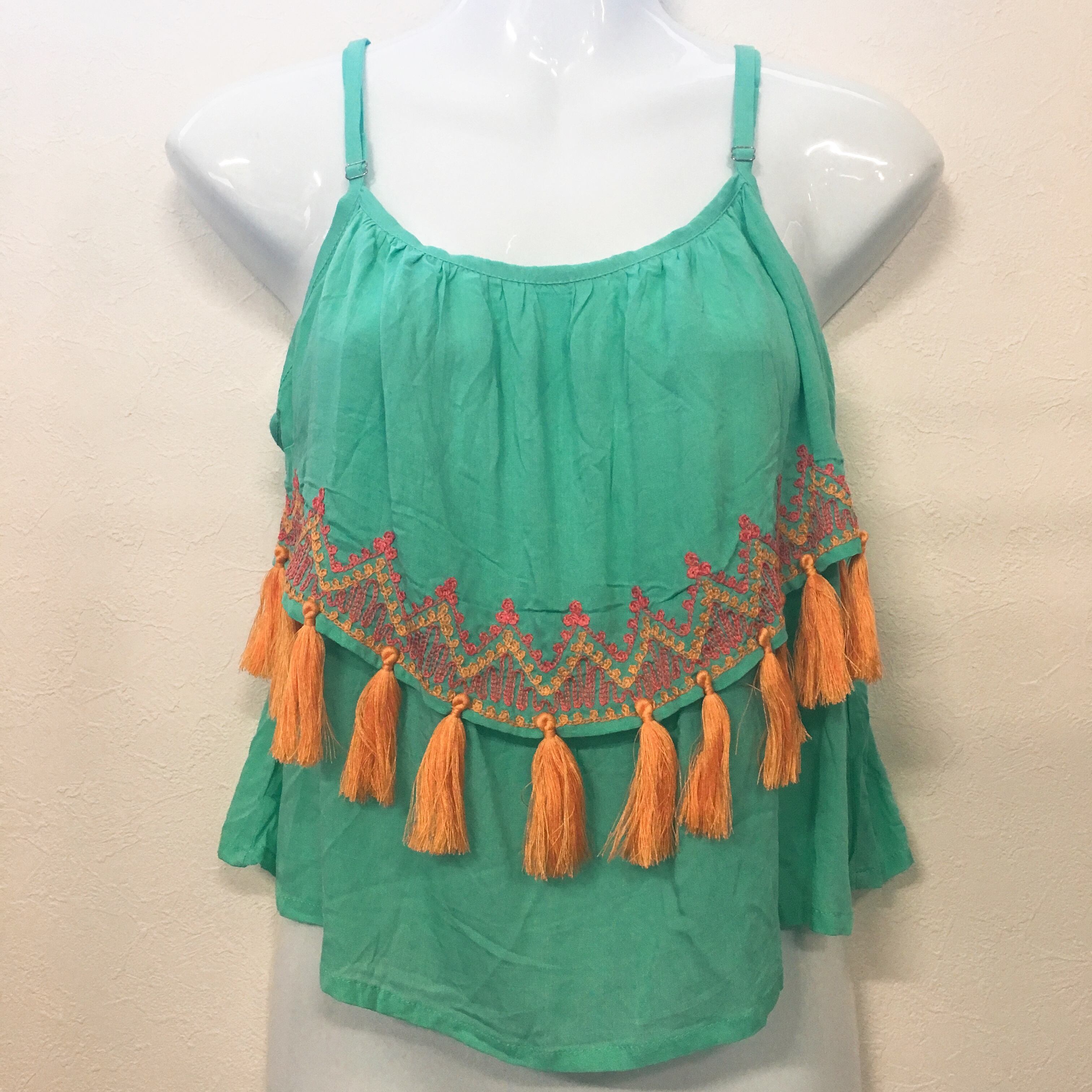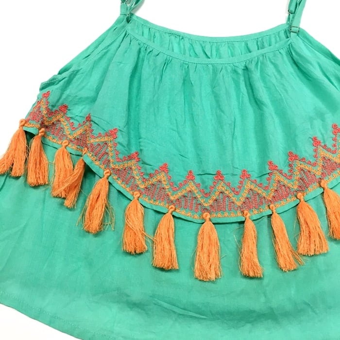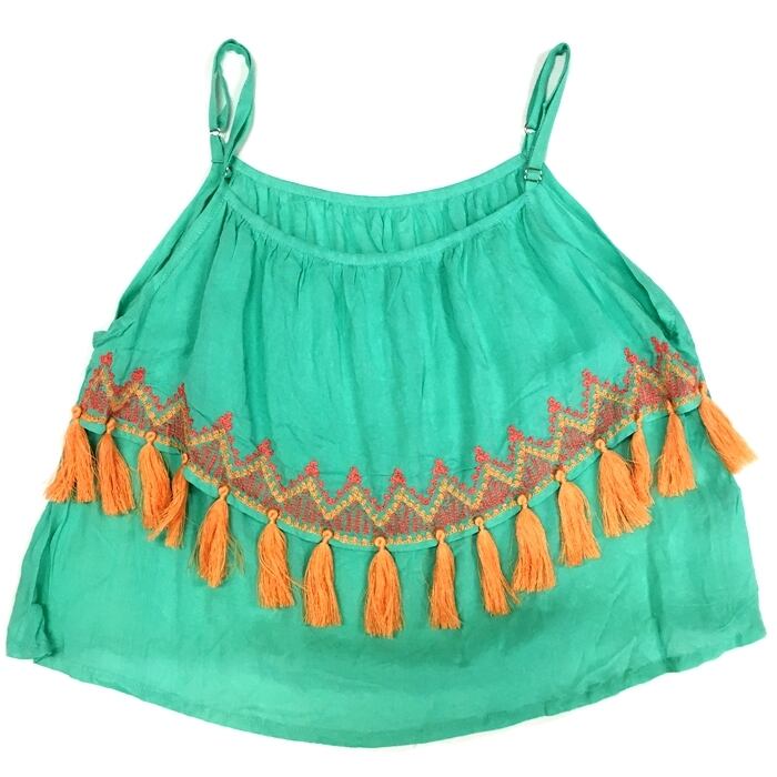 刺繍×タッセル リゾートキャミソール(グリーン)海 ビーチ 【バリ島直輸入】