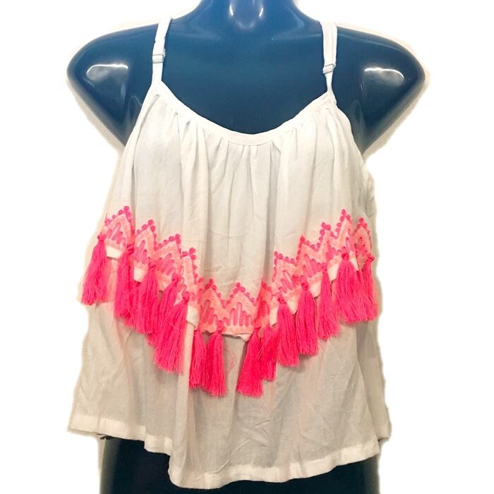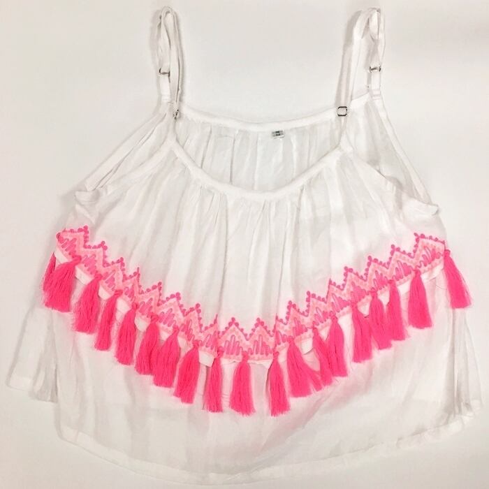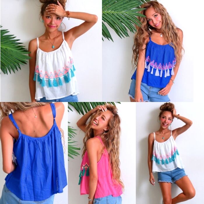刺繍×タッセル リゾートキャミソール(グレー)海 ビーチ 【バリ島直輸入】