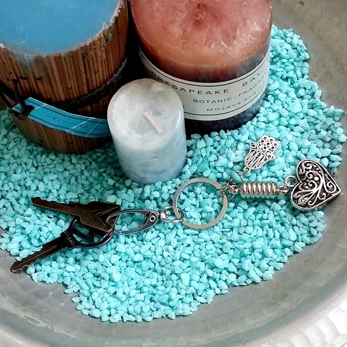ファティマの手とターコイズとハートの組み合わせノキーリング。