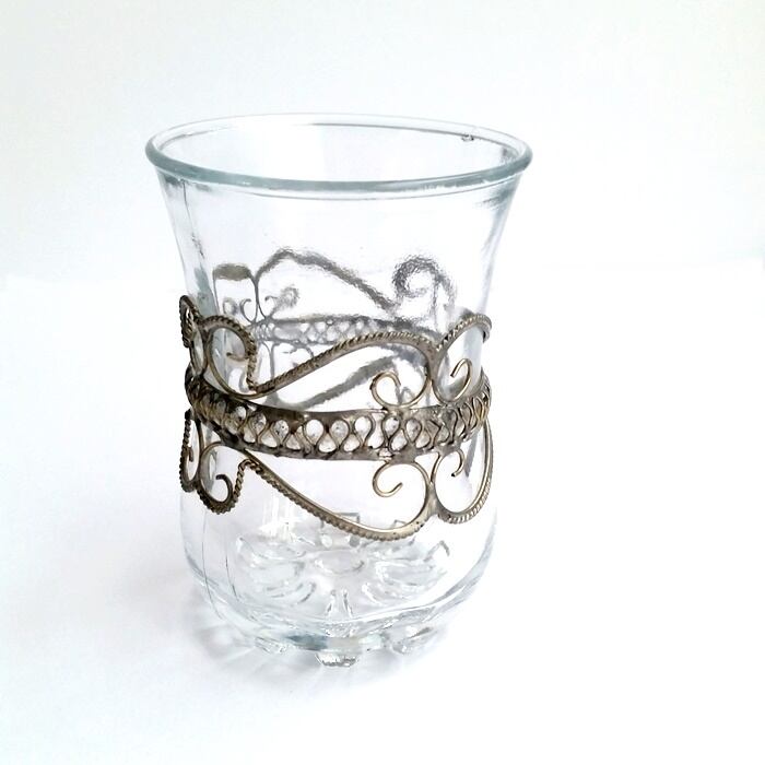 こちらはアクセサリーのようなシルバーの装飾が上品で可愛いミントティーグラスです。