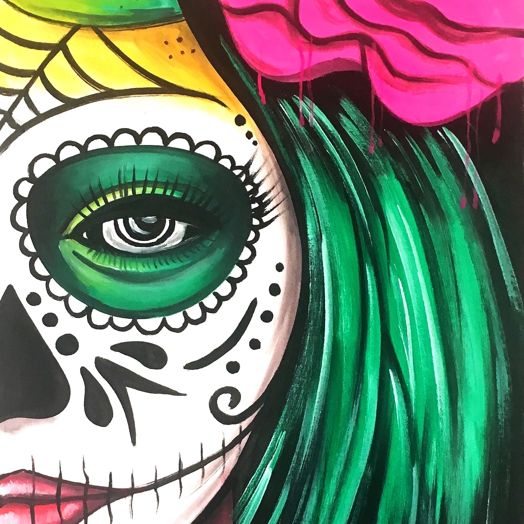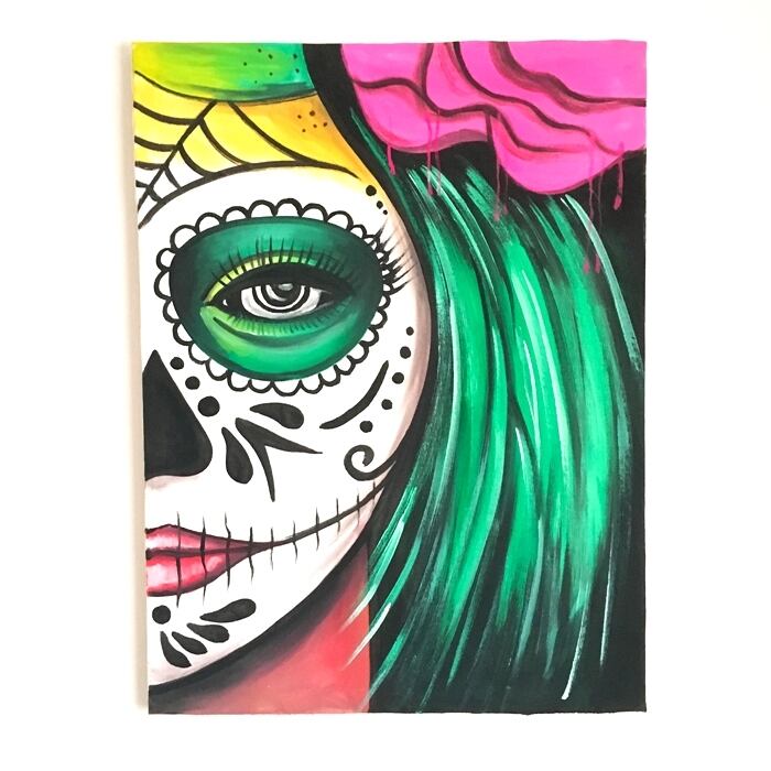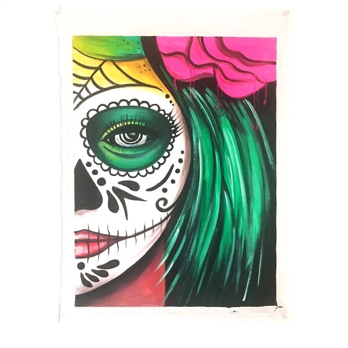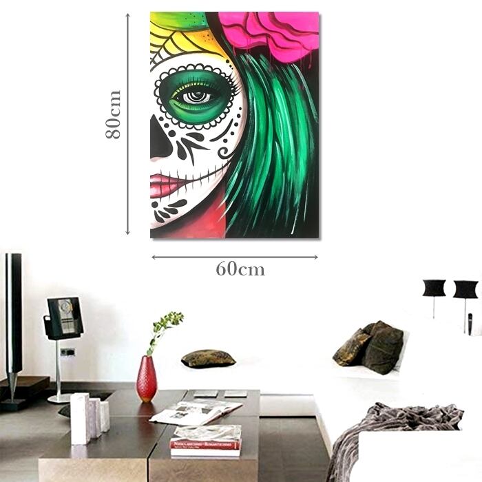 バリ キャンバスアート (メキシカンスカルガールB) 80×60cm これ1枚でお洒落なお部屋【バリ島直輸入】