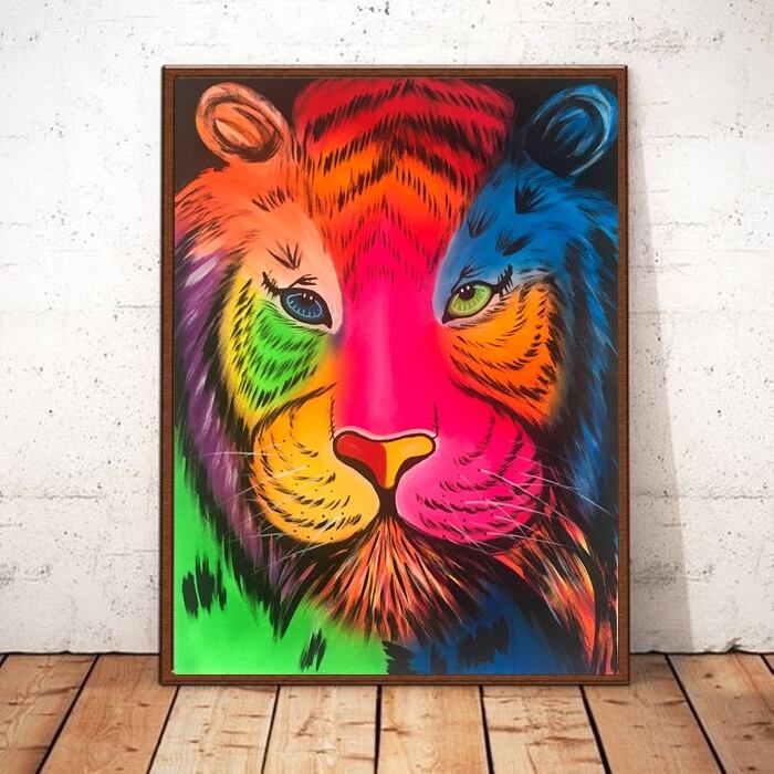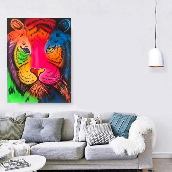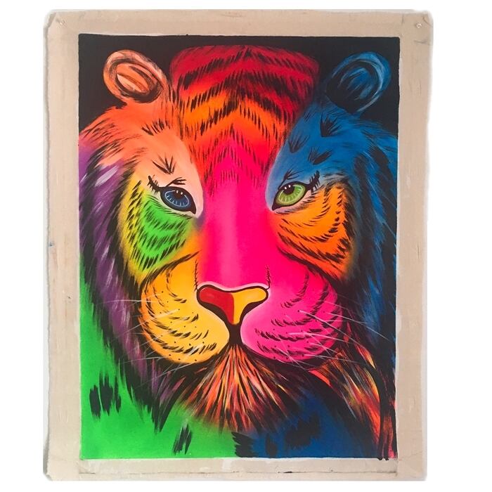 バリ キャンバスアート (ライオン×レインボー) 80×60cm これ1枚でお洒落なお部屋【バリ島直輸入】
