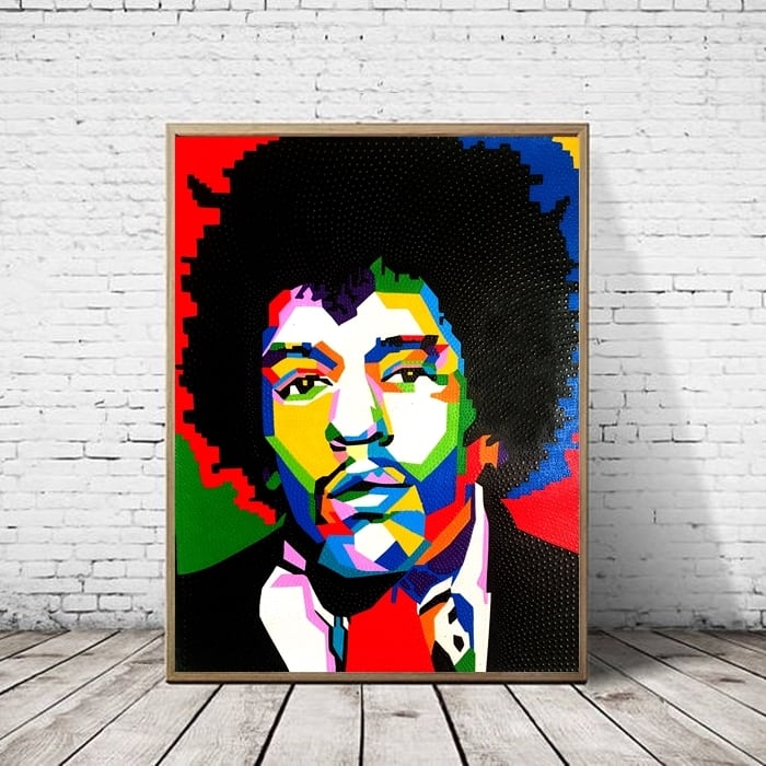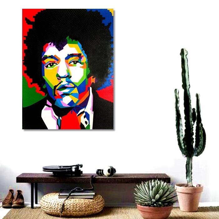 スーパースター ドットアート (ジミ・ヘンドリックス/Jimi Hendrixe) 90×70cm これ1枚でお洒落なお部屋/バリアート【バリ島直輸入】