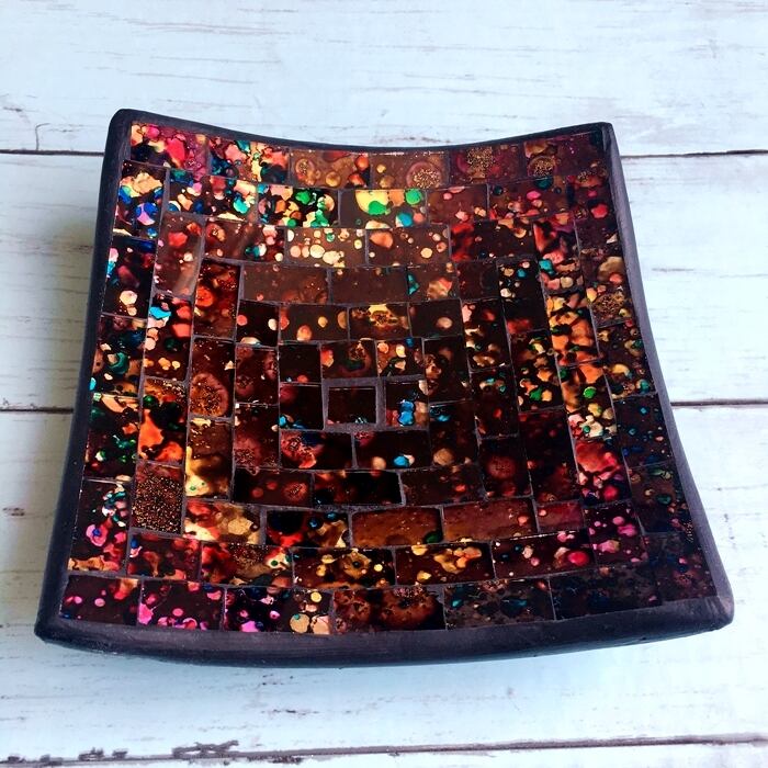 カラフル モザイクトレイ (ブラウンMIX×ブラック)小物入れ インテリア スクエアプレート【バリ島直輸入】