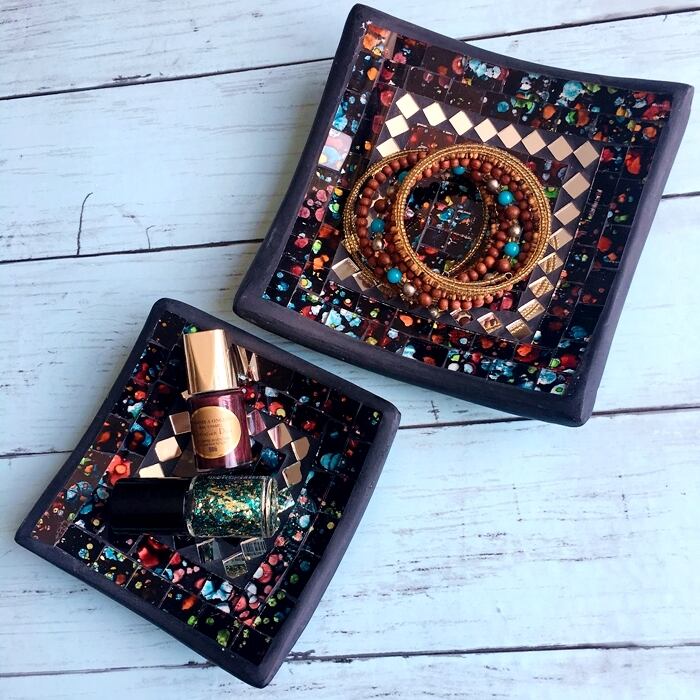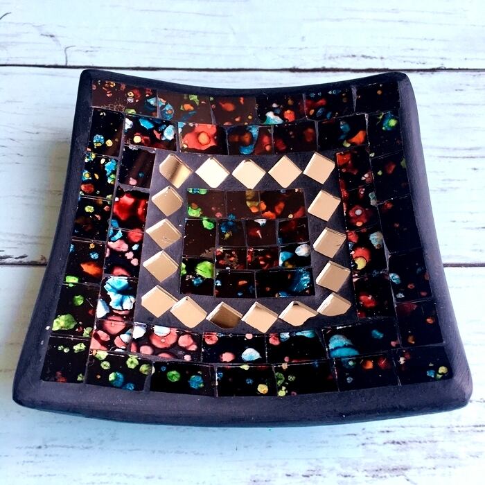 カラフル モザイクトレイ S (ブラックMIX×ブラック)小物入れ インテリア スクエアプレート【バリ島直輸入】