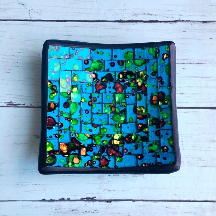 カラフル モザイクトレイ S (ターコイズMIX×ブラック)小物入れ インテリア スクエアプレート【バリ島直輸入】