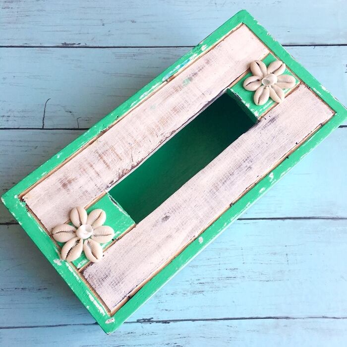 海を感じる 貝殻付 ティッシュケースBOX(ミントmix)【バリ島直輸入】